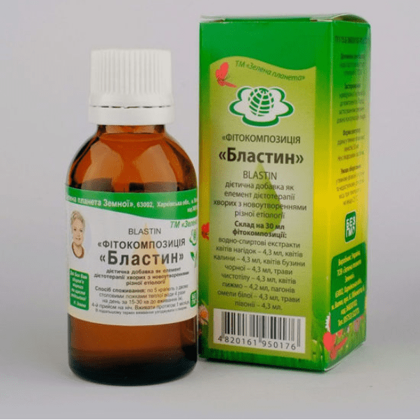 Бластин — це фітокомпозиція на основі водно-спиртових екстрактів лікарських рослин, які традиційно використовуються у фітотерапії для підтримки організму при новоутвореннях. Засіб належить до рослинних комплексів, що можуть застосовуватися у програмах підтримки організму при пухлинних захворюваннях різної локалізації.