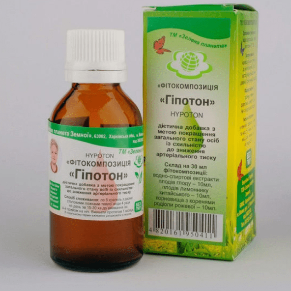 Гіпотон — це фітокомпозиція на основі водно-спиртових екстрактів лікарських рослин, які традиційно використовуються у фітотерапії для підтримки роботи серцево-судинної системи та нормалізації зниженого артеріального тиску. Засіб спрямований на стимуляцію природних механізмів регуляції судинного тонусу та покращення функціонування серцевого м’яза.