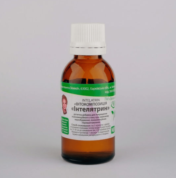 Інтелятрин — це фітокомпозиція, що містить водно-спиртові екстракти лікарських рослин, які традиційно використовуються у фітотерапії для підтримки нормальної роботи нервової системи та головного мозку. Засіб спрямований на відновлення порушених фізіологічних процесів у корі головного мозку та підтримку балансу між процесами збудження і гальмування.