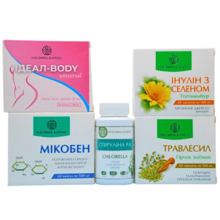 Мікобен та Спіруліна сприяють м’якому виведенню продуктів обміну, підтримують антиоксидантний захист і допомагають зменшити навантаження на печінку.