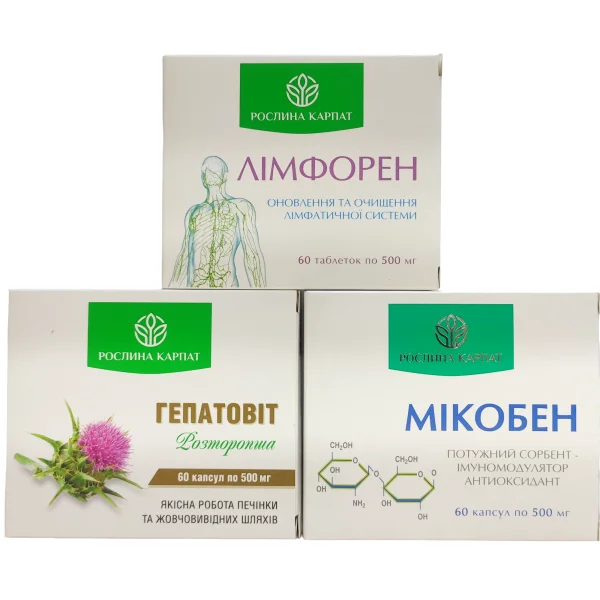 У сукупності ці засоби працюють синергічно: Гепатовіт відновлює клітини печінки та стимулює жовчовідтік, Мікобен зменшує запалення та підтримує мікробіом, а Лімфорен активує природні механізми очищення організму. Завдяки цьому нормалізується травлення, покращується перетравлення жирної їжі, зменшується здуття, важкість та дискомфорт після прийомів їжі.
