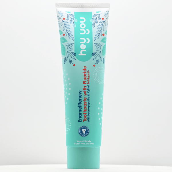 Зубна паста Hey You Enamel Renew Toothpaste — це професійний засіб для щоденного догляду за зубами, спеціально розроблений для ремінералізації емалі та зниження чутливості. Її інноваційна формула поєднує три джерела кальцію, біоідентичний гідроксиапатит та фторид натрію (1448 ppm), які працюють синергічно для відновлення пошкоджених ділянок емалі, зміцнення зубної тканини та профілактики карієсу.