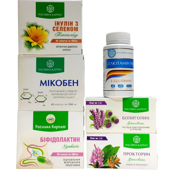 Мікобен у складі програми виконує важливу очищувальну функцію. Він сприяє зв’язуванню та виведенню токсинів, продуктів життєдіяльності патогенних мікроорганізмів і надлишкових метаболітів, які подразнюють слизову кишечника. Зменшення токсичного навантаження створює умови для відновлення нормальної перистальтики та зниження запальних реакцій.