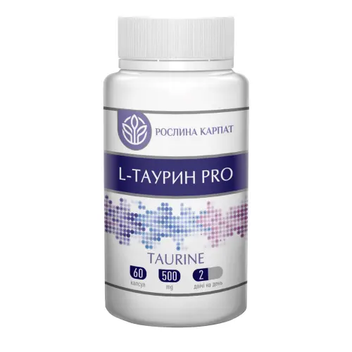 Таурин 500 мг 60 капсул – Рослина Карпат – амінокислота для підтримки серця, нервової системи та обміну речовин